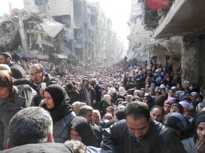 Casi 12 millones de personas necesitan de la ayuda humanitaria para sobrevivir, cerca de 70% de la población no tiene acceso a agua potable, una de cada tres personas no puede satisfacer sus necesidades alimentarias básicas, más de dos millones de niños no van al colegio y una de cada cinco personas vive en la pobreza. Siria nos ha dado escenas como las colas del hambre en Yarmouk, donde los palestinos refugiados en el campo ingerían carne de gato o hierbas no comestibles.
