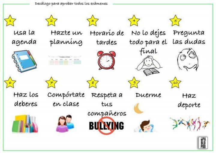 (Basado en el apartado "Diez consejos para no suspender" del capítulo 6 de "Espabila, chaval")