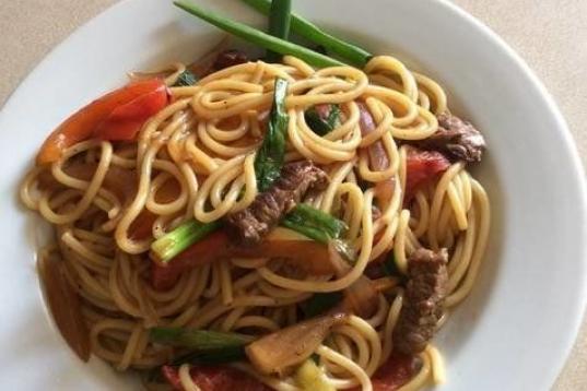 Lleva cebolla, pimiento, ají amarillo, cebolla china, tomate, maizena y fideos. Aquí puedes ver cómo prepararlo.