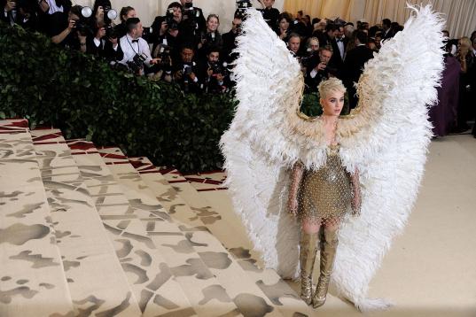 Tampoco defraudaron la cantante Katy Perry, vestida de ángel con unas enormes alas, o la actriz Sarah Jessica Parker, que no dudó en plantarse un paso en la cabeza. A continuación puedes repasar los estilismos más llamativos de la gala MET 2018, que harán soltar más de un "¡Cielos!":