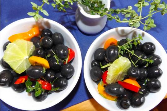 Las aceitunas son el aperitivo ideal mientras se cocina y además, se pueden aderezar con lo que tengamos en la nevera. ¿Qué tal con pimientos y lima? Pruébalo con esta receta.
