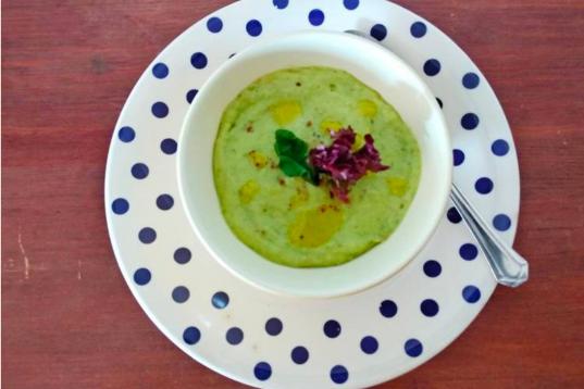 Si pensabas que todo el salmorejo llevaba tomate, te equivocabas. Este es de aguacate, hojas verdes y manzanas. Prueba a acompañarlo con dátiles para potenciar el contraste dulce/ácido. Consulta la receta completa en CookPad.