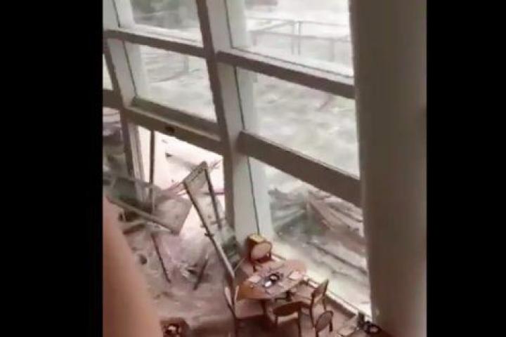 A través de las redes sociales circulan numerosas imágenes en las que aparecen rascacielos con las ventanas arrancadas, estacionamientos inundados, andamios arrancados y edificios tambaleándose.