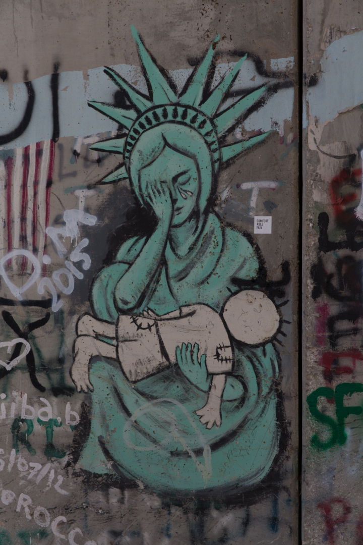 Para verlo menos, o verlo distinto, los palestinos han usado el muro como lienzo desde el principio. Las pintadas, grafitis y plantillas han tomado las paredes en las zonas más habitadas y accesibles, convirtiéndolo en un grito contra la ocupación. Todo banderas palestinas, retratos de sus líderes (del que fuera presidente Yasser Arafat a la activista Leila Khaled, pasando por la recientemente asesinada periodista Shireen Abu Akleh) y soflamas. Hasta el artista británico Banksy decidió hace unos años abrir un “hotel con vistas al muro” en Belén, donde dejó su impronta en varios viajes. Una reivindicación y un alivio para la maltrecha economía local.