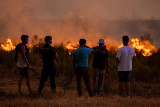 La proximidad de las llamas han obligado al desalojo por seguridad de las minas de Aguas Teñidas y Magdalena, que han parado sus operaciones, y a la evacuación de unos 180 vecinos de las aldeas de Cueva de la Mora y Monteblanco, la mayoría de los cuales ha pasado la noche en casa de familiares y amigos y unos 25 en un albergue de Almonaster.