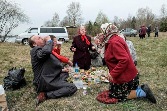 El segundo día de Pascua, la Iglesia Ortodoxa llama a los rusos a visitar los cementerios donde están las tumbas de sus seres queridos para compartir con ellos una comida. Así, los camposantos y sus alrededores se convierten en fiestas enormes. De nuevo la vida que se impone, los buenos recuerdos y los buenos sentimientos alejando los malos.