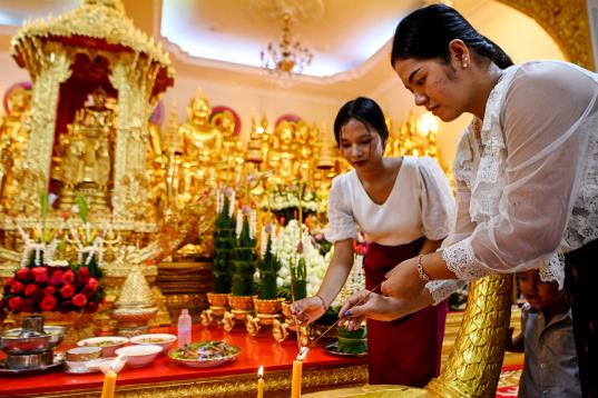 Los monjes pasan estas dos semanas entregados a la oración y a los cánticos sagrados y la primera noche están rezando sin parar, sin dormir. Y es que, según la cosmología y la tradición de Camboya, las puertas del infierno se abren durante esos 15 días y hay que estar preparados para que nada malo ocurra. Son días para liberar a los espíritus, pero hay que cuidarlos bien. Así, algunos podrán terminar su período en el purgatorio y los que sigan en el infierno, podrán descansar durante unos días, antes de regresar a soportar más sufrimiento. Para los que han pasado todo eso y descansan en paz, es un momento de recuerdo, más que de tregua.