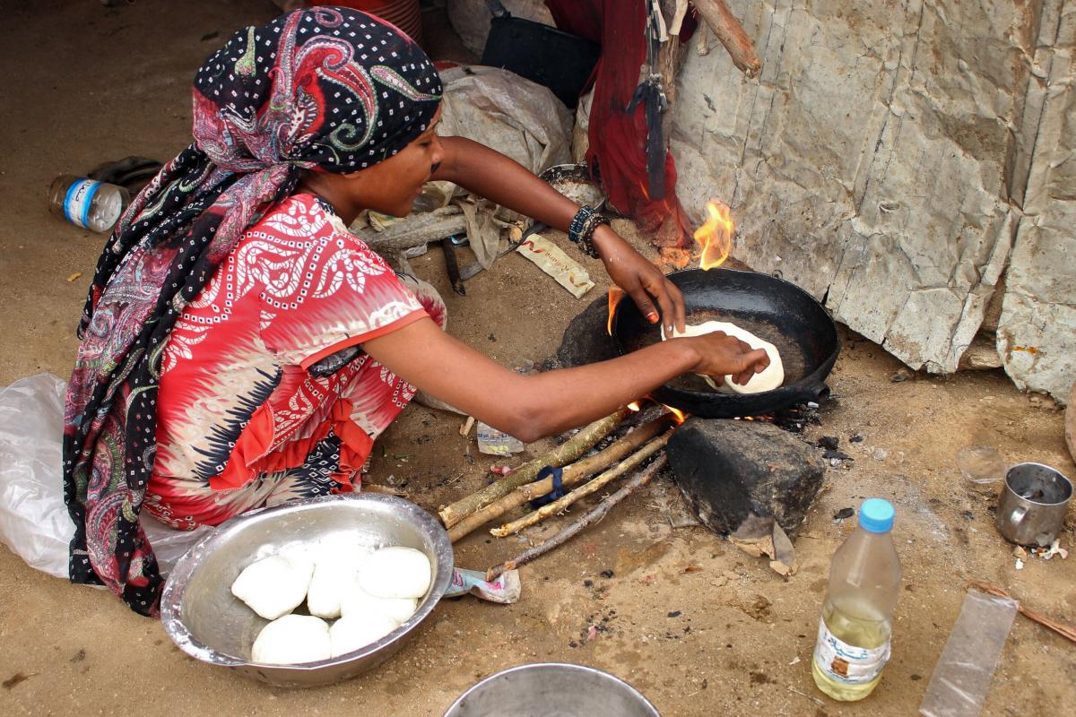 Una mujer prepara la comida en un campo de desplazados de Hajjah (Yemen). ESSA AHMED/AFP via Getty Images