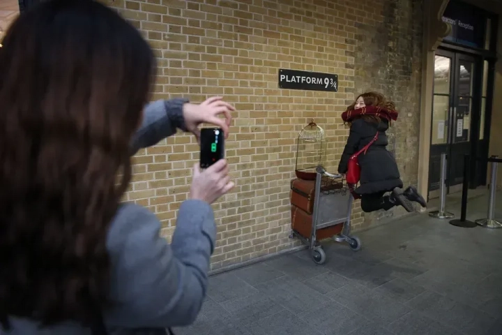 La estación de Londres de King’s Cross cuenta con una zona reservada para que los seguidores de Harry Potter puedan hacerse fotos atravesando el muro del andén 9 3/4 junto a una tienda de productos oficiales.