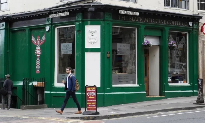 Una placa en el exterior del pub Black Medicine Coffee Co., en Edimburgo, presume de que J. K. Rowling escribió los primeros capítulos de Harry Potter en las habitaciones de la primera planta del edificio. De hecho, en la planta superior antes estaba el Nicholson’s Cafe, desde donde Rowling escribía en ocasiones.