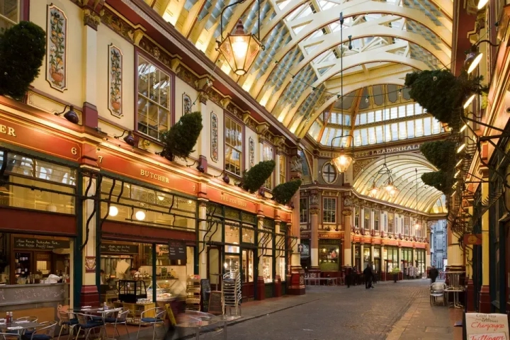 En la primera película, Harry y Hagrid atraviesan el mercado de Leadenhall para rodar los exteriores del callejón Diagon.