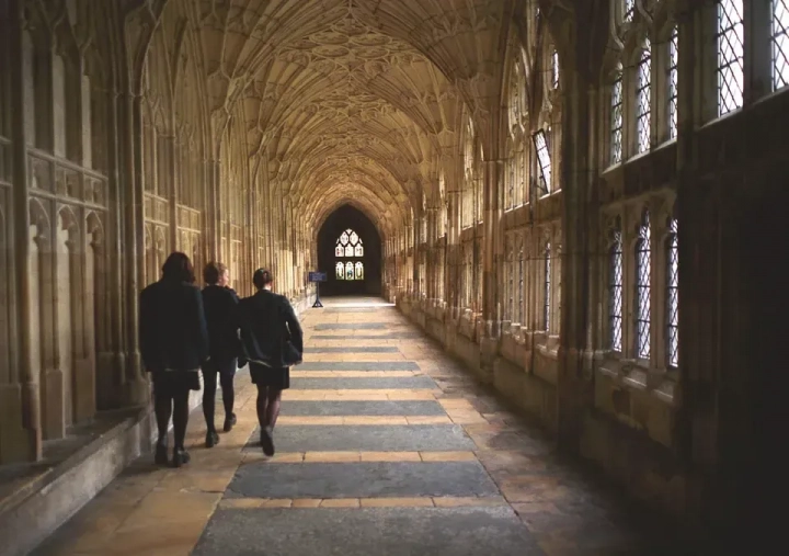 El claustro de la catedral de Gloucester, en Reino Unido, aparece en varias escenas de las primeras dos películas de Harry Potter, como la llegada de los nuevos alumnos a la sala común de Gryffindor y cuando descubren el ominoso mensaje escrito con sangre en la pared: “La Cámara de los Secretos ha sido abierta”. También aparece brevemente en la sexta película.