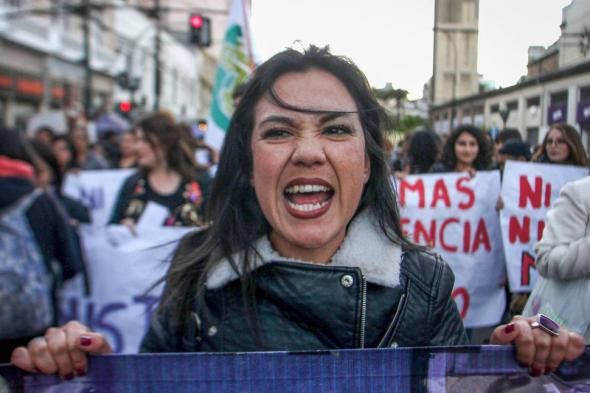 10Activistas feministas protestan en las calles durante la manifestación a nivel nacional con el lema Ni Una Menos para exigir justicia para todas las mujeres víctimas de violencia machista y en repulsa al asesinato de Florencia Aguirre, una niña de nueve años que fue estrangulada, quemada y enterrada por su padre en Coyhaique. 19 de octubre de 2016, Valparaíso.
