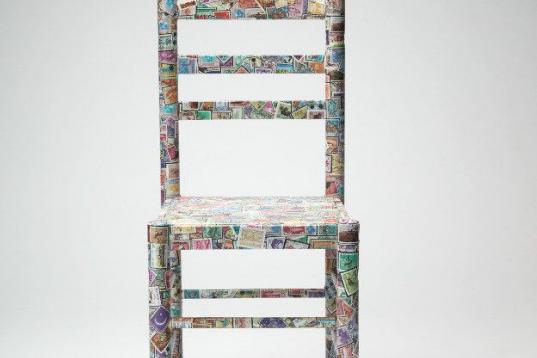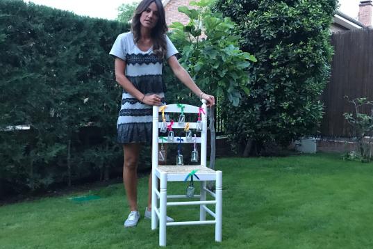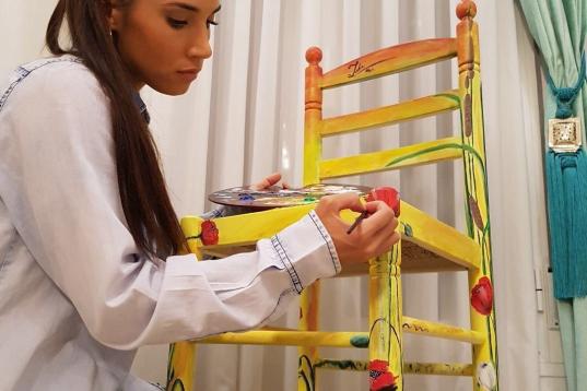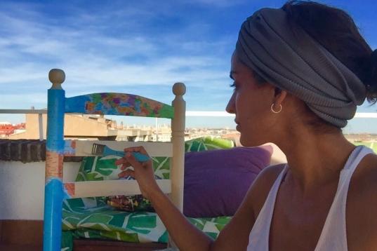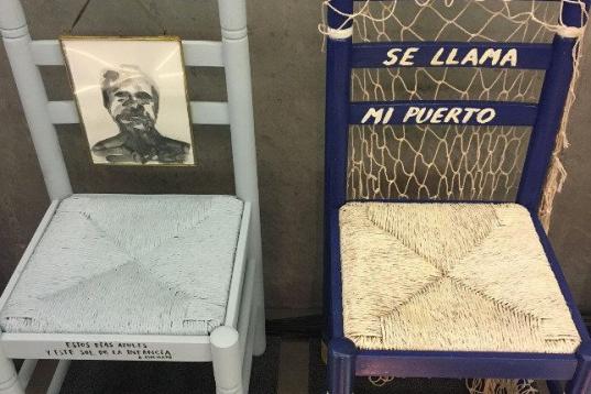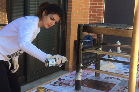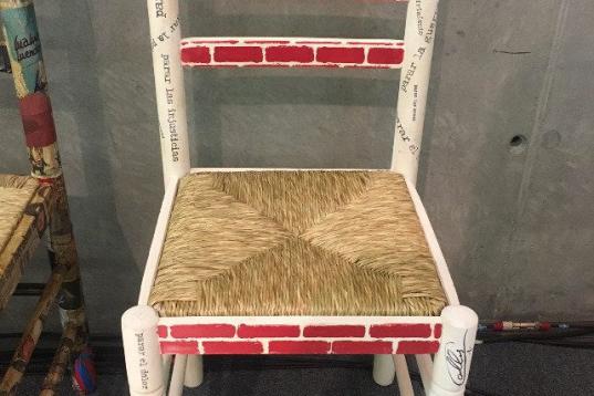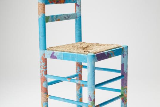 Ella misma ha aportado una silla a la causa. "Me gusta mucho dibujar y también hago collage, pero me pareció que era bonito forrarla con un mapa del mundo", apunta.