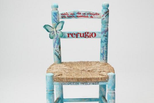 Lo hacen a través de la exposición (y, más adelante, una subasta) llamada Tu silla su refugio, organizada por la Comisión Española de Ayuda al Refugiado (CEAR) e impulsada por la actriz Inma Cuesta. La muestra, ubicada en CaixaForum Madrid, incluye más de medio centenar de sillas customizadas por famosos: las hay con alas, otras con pinchos, otras son de colores vibrantes, las hay que tienen un mensaje escrito...