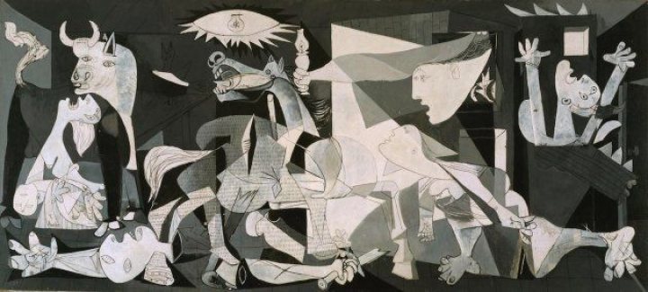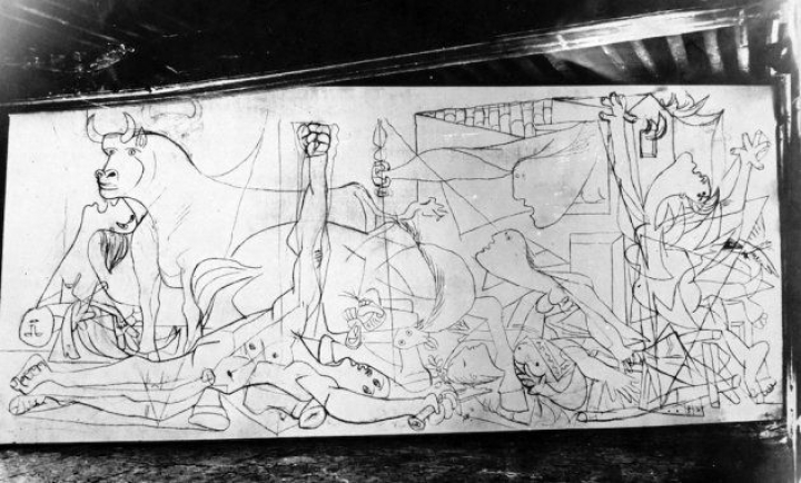 "Con estos mimbres primero piensa que va a hacer una obra con sus vivencias personales", prosigue. Sin embargo, el bombardeo de Guernica y las fotos que al parecer vio en el periódico L'Humanité del pueblo destrozado le conmovieron profundamente, por lo que el mural acabó convertido "en un alegato contra la violencia de la guerra en general", porque "no aparece ni un avión, ni un arma bélica... eso le otorga su condición de imagen universal", afirma Paloma Esteban.