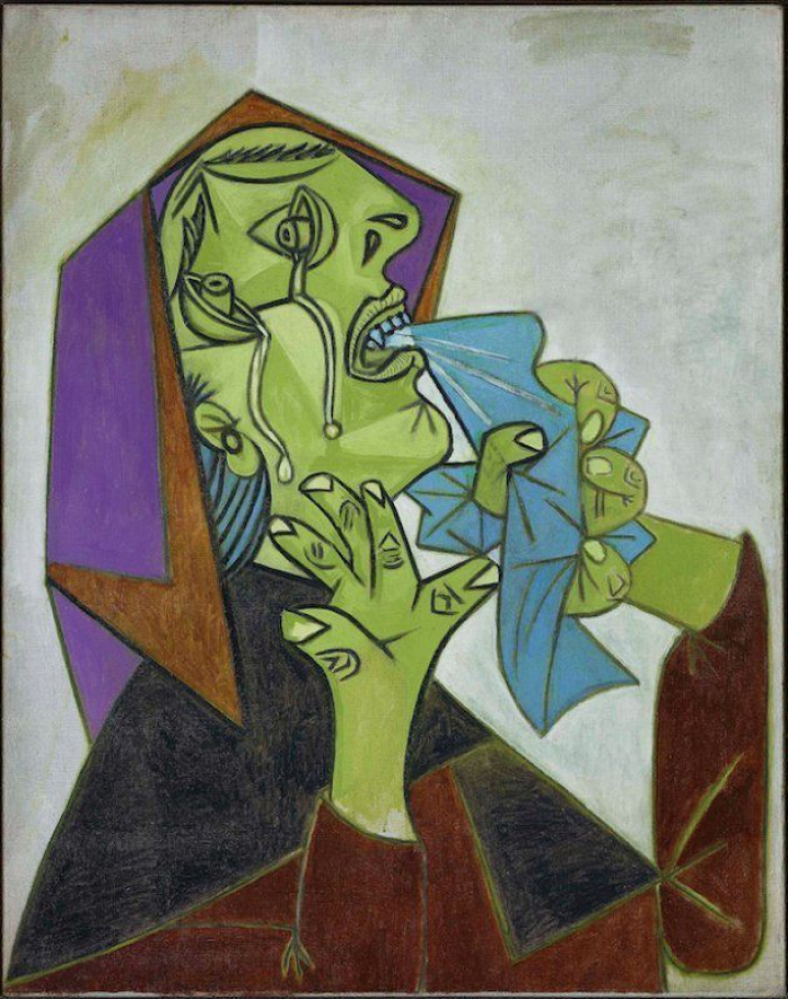 La madre del niño muerto y las cabezas de mujer interesan tanto a Picasso que, una vez finalizado el Guernica, sigue pintándolas en los llamados postscriptos. "Seguirá representando estos motivos e introducirá tres modificaciones: el color; las lágrimas y el pañuelo con el que se enjugan esas lágrimas".