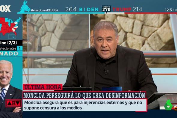 “Alto riesgo, peligro. Un gobierno dedicado a decidir qué es verdad y qué es mentira, qué es información y qué es desinformación. Los gobiernos tienen cierta tendencia a desinformar y a intentar controlar los medios de comunicación. Alto riesgo. Peligro”, ha repetido el presentador de laSexta.