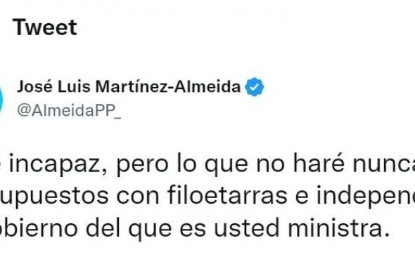 Oskar Matute, diputado de EH Bildu, ha reaccionado con solo tres palabras al mensaje que el alcalde de Madrid, José Luis Martínez-Almeida, ha publicado este viernes, tras ver las palabras que la ministra de Industria, Comercio y Turismo, Reyes Maroto, le había dedicado.