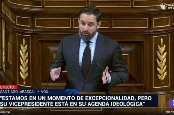 “Hoy 22 de abril han muerto más de 20.000 personas en España, aunque sin test, ya nadie se cree ningún dato de los que ustedes nos dan”. El líder de Vox, Santiago Abascal, ha cargado contra la gestión del Gobierno desde que comenzara la pandemia, a quien ha instado a dimitir, y en concreto, contra el director del Centro de Alertas y Emergencias Sanitarias, Fernando Simón. “No han sido capaces de honrar a los muertos con un luto oficial, pero cómo van a hacerlo si han puesto más empeño en ocultar las víctimas que en protegerlas, porque todo el mundo sabe que los muertos son muchos más”, ha espetado.