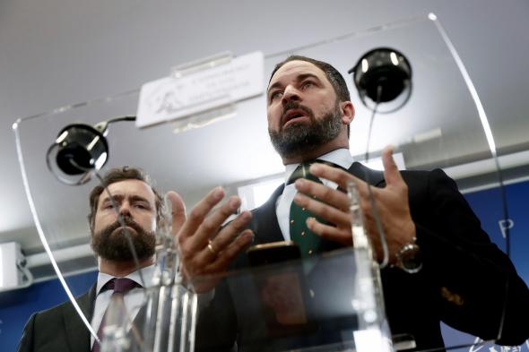 Abascal ha denunciado en una rueda de prensa en el Congreso el pacto entre “los dos perdedores” de las elecciones, que han cometido la “mayor y más burda estafa electoral de la democracia” y protagonizado una “gigantesca operación de disimulo”.