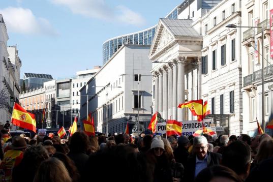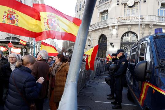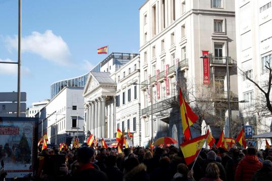 La intervención del dirigente ultraderechista Santiago Abascal en el debate de investidura de este sábado ha empezado con una sentencia directa con nombre y apellidos: Quim Torra. “Debe ser detenido”, ha espetado desde la tribuna de oradores en el momento en el que la Puerta de los Leones del Congreso se ha llenado de manifestantes ondeando banderas de España.
