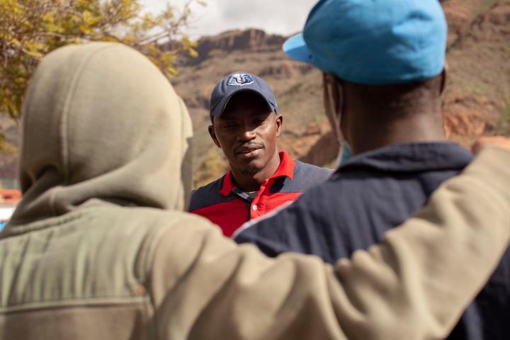 Estas travesías pueden durar diez días, incluso más, en función del estado del mar y de la orientación del precario capitán. Aboubacar y su estrella solo navegaron cuatro; también sus noches, con su frío y su oscuridad en medio de las olas. La balsa lo llevó hasta Arguineguín, en el sur de Gran Canaria. Lo acogieron en un centro de menores. Allí le hicieron la prueba ósea para determinar la edad y salió que tenía catorce, en vez de los diecisiete reales, por lo que no le permitieron trabajar, objetivo fundamental de su viaje. “No entendía por qué, en África todos los niños lo hacen”. En la espera hacia el reconocimiento de su mayoría de edad, que duró dos años, aprendió español y se hizo amigo de un periodista, Pepe Naranjo, al que conoció cuando este fue a hacer un reportaje al centro en el que se encontraba.