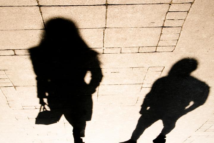 Silhouette shadow of a woman and a man on city sidewalk in sepia black and whiteAlexLinch via Getty Images/iStockphoto