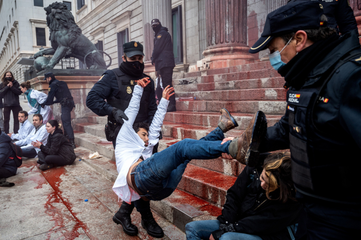 14 activistas de Rebelión Científica han sido detenidos y, horas después, puestos en libertad, este miércoles por parte de la Policía Nacional en relación al lanzamiento de pintura contra la fachada del Congreso el pasado 6 de abril.