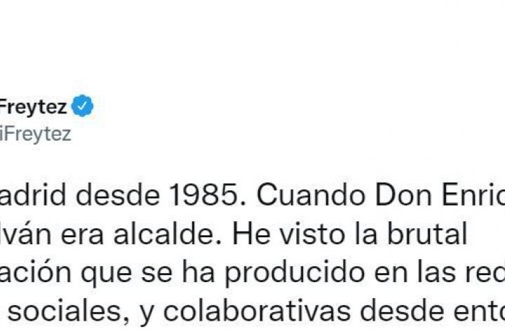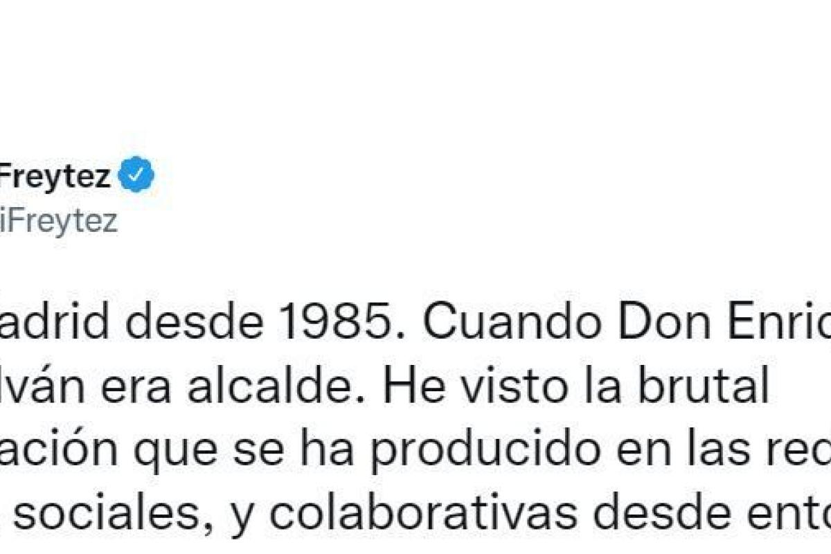 El actor Patxi Freytez ha publicado varios mensajes en su cuenta oficial de Twitter en los que ha mostrado su indignación por cómo ha cambiado Madrid durante los últimos años.