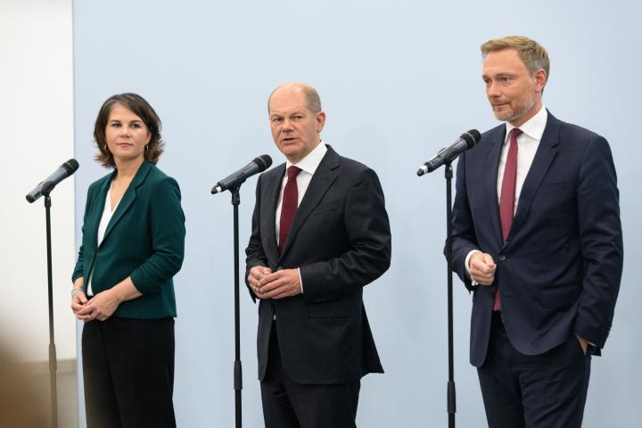 Las negociaciones comenzaron el 28 de septiembre en un encuentro entre la cúpula de verdes y liberales –socios menores en el futuro gobierno de coalición– que trascendió a posteriori y quedó inmortalizado en un selfie que muestra a la los verdes Annalena Baerbock y Robert Habeck y a los liberales Christian Lindner y Volker Wissing. Los Verdes obtuvieron un 14,8% de los votos y los liberales del FDP, un 11,5%.