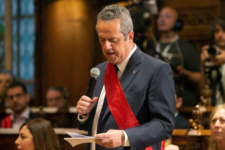 Colándose un ruido ensordecedor de protestas de la calle, en el Ayuntamiento de Barcelona se ha visto también otra fotografía: la del concejal preso Joaquim Forn tomando posesión -el Supremo le ha dejado salir unas horas de la cárcel-. Cuando ha depositado su voto, los diputados de su grupo y de ERC y parte del público presente le ha aplaudido.
