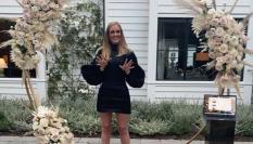 Primero se ha fotografiado en ropa cómoda delante de la televisión mientras se emitía el concierto para luego enfundarse el vestido de Chloé negro con lentejuelas doradas que llevaba en la actuación.