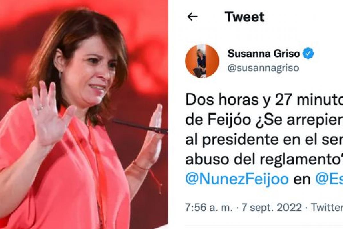 Adriana Lastra empieza con un llamativo "señora por favor" su tuit de respuesta a Susanna Griso