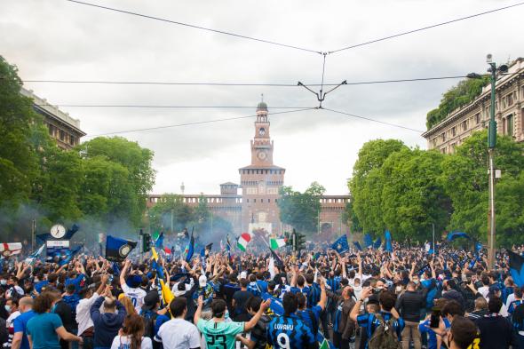 Después de más de una década sin levantar el título liguero, el Inter de Milán se proclamó este domingo campeón de la Serie A, la liga de fútbol italiana. La victoria supo a gloria a una afición que pudo ver cómo su equipo desbancaba a una Juventus que llevaba nueve años consecutivos triunfando. No obstante, las fotos de la celebración de sus forofos han dado la vuelta al mundo.