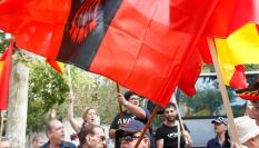 Además, también se pueden ver bengalas, prohibidas en los campos de fútbol por su peligrosidad.