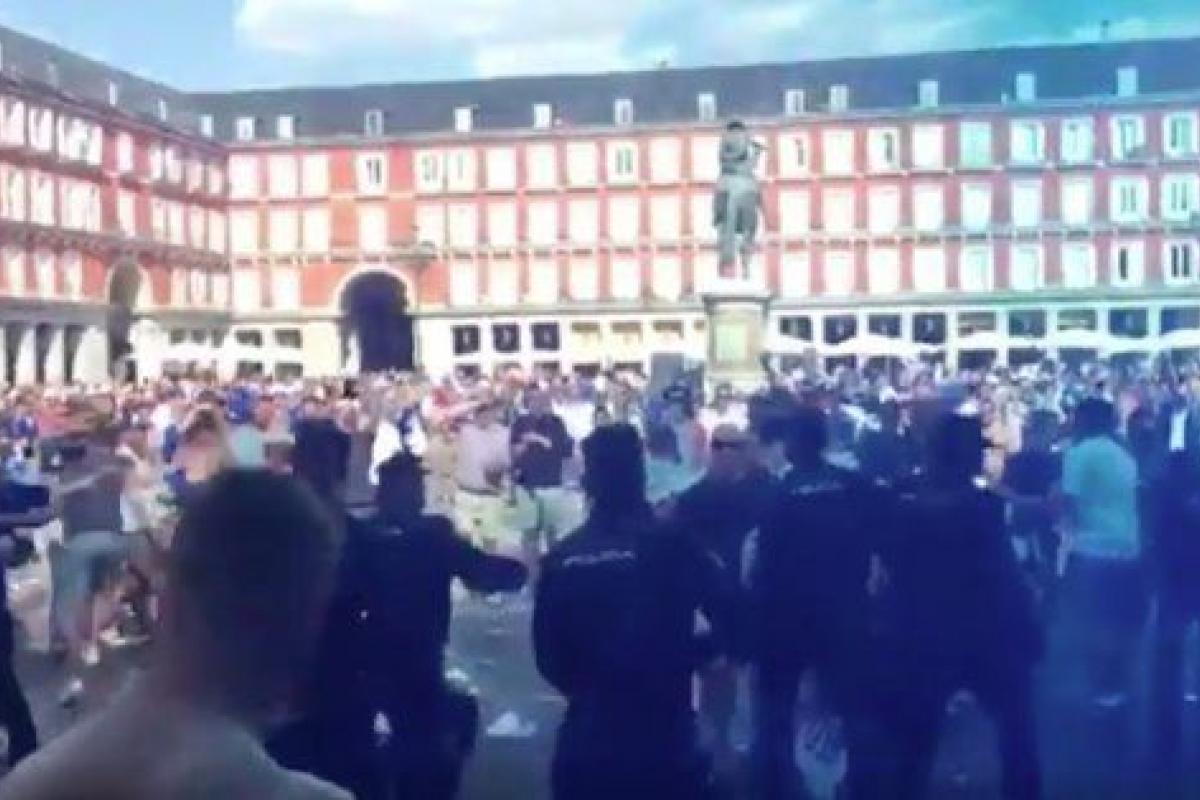 Las Unidades de Intervención Policial (UIP), los conocidos como 'antidisturbios', han tenido que intervenir de nuevo ante un grupo de aficionados del Leicester que estaba en Plaza Mayor para evitar que generaran altercados, si bien no se han producido detenciones.