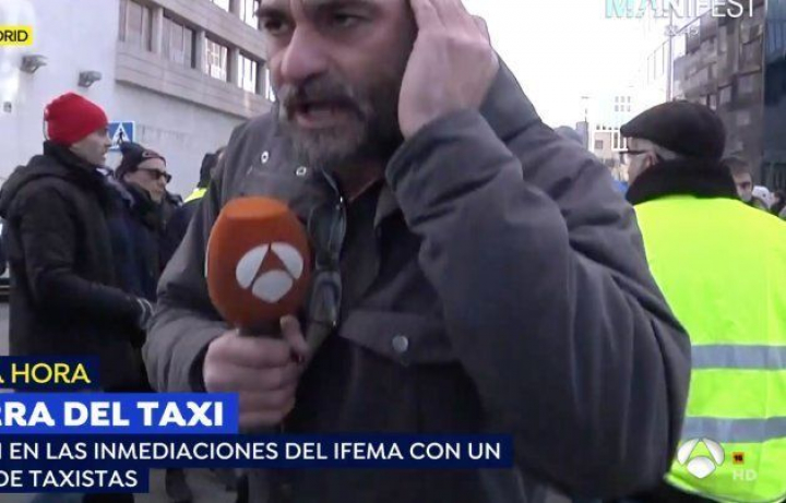 El programa Espejo Público de Antena 3 ha vivido este jueves el segundo día de máxima tensión en directo cuando el reportero Raúl García informaba de las protestas de los taxistas en Madrid, que reclaman una regulación autonómica de las VTC.