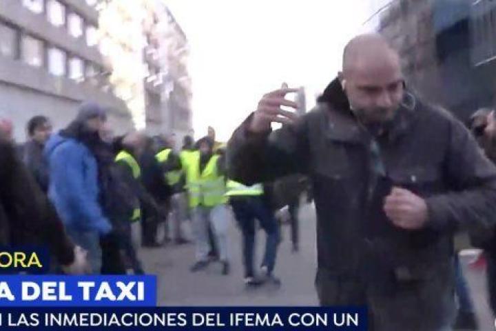 "Acaban de tirarnos un huevo. Trabajar aquí es muy complicado. Han venido a atacarnos", acertó a decir el reportero, que poco después consiguió hablar tranquilamente con un representante de los taxistas. El conductor aprovechó la conexión para atacar a la prensa.