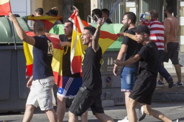 Pero antes, como muestran vídeos y han denunciado afectados, los ultras y cabezas rapadas han golpeado a manifestantes con los palos de sus banderas de España, tras lo cual han salido corriendo. Uno de los agredidos es el fotógrafo del diario La Opinión de Murcia Israel Sánchez.