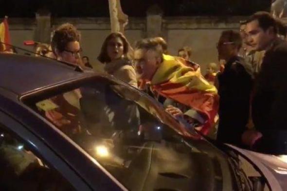 En este vídeo, podemos ver cómo varios manifestantes increpan e incluso escupen a un coche donde hay una mujer mayor en el asiento del copiloto.