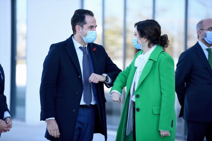 El vicepresidente de la Comunidad de Madrid, Ignacio Aguado, y la presidenta, Isabel Díaz Ayuso, durante la inauguración del Hospital Isabel Zendal en diciembre.Juan Carlos Lucas/NurPhoto via Getty Images