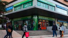 En la fotografía, se ve en primer plano una casa de apuestas de la marca Codere y, al fondo, un letrero azul. En él se puede leer lo siguiente: “AONUJER. Asociación Onubense de Jugadores de Azar en Rehabilitación”.