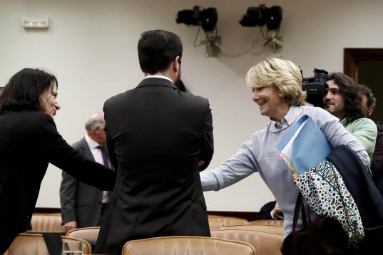 El líder de IU Alberto Garzón, en representación de Unidos Podemos, le ha inquirido, por su parte, sobre la reunión de 2004 con Mariano Rajoy, el presidente del Gobierno, en la que se habló de adjudicaciones en dos municipios madrileños, Arganda del Rey y Majadahonda, que luego se investigaron en el caso Gürtel. Aguirre ha recordado a Garzón que ya la describió en su libro, le ha instado a leerlo y le ha relatado que se lo regaló a "su líder, Pablo", en referencia al de Podemos, Pablo Iglesias.