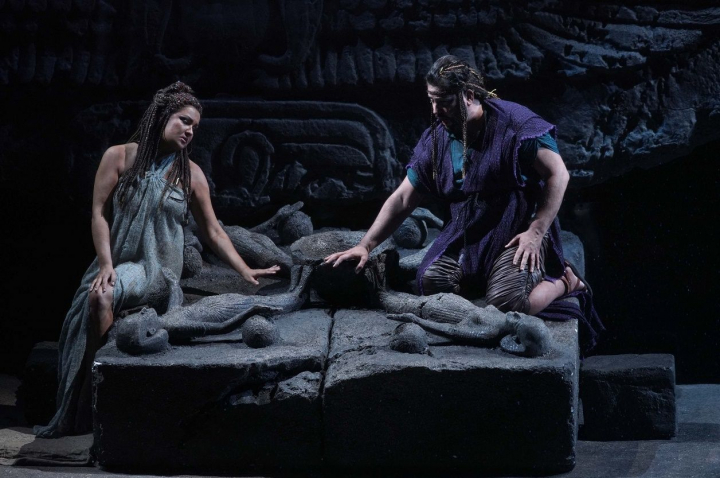Y es que se quieren, pero, como Romeo y Julieta y tantas otras parejas de ficción, pertenecen a bandos enemigos irreconciliables y correrán una suerte similar, porque ese contexto social de enemistad siempre está poniendo piedras y palos en las ruedas del amor. En este caso Aida es una princesa etíope, cuyo pueblo quiere invadir Egipto, y Radamés es egipcio y capitán de los ejércitos que combatirán al ejército invasor. Vamos, que no se cuenta nada nuevo. Y cantar, por lo menos ahora, tampoco.