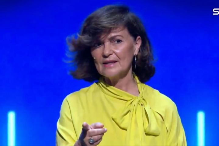 Aimar Bretos recuerda la brusca respuesta de Carmen Calvo el primer día de 'El Ágora' y ella se explica