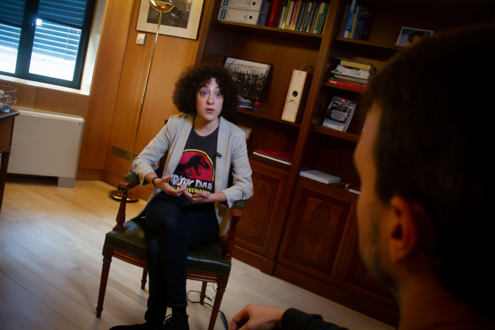 Hoy, mucho después de aquello y con sus rebeldes rizos ya de vuelta, Aina Vidal (Barcelona, 1985), portavoz de En Comú Podem en el Congreso, recibe a El HuffPost en su despacho del Parlamento.