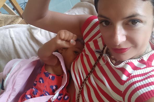 Ahora, gracias a Dios, soy una profesional de la lactancia. Las he amamantado haciendo cola para los probadores de Zara en rebajas, puedo hacer posiciones casi contorsionistas para darle el pecho a mi hija si está sujeta en el asiento de un coche en movimiento, y puedo darle de mamar en la oscuridad sin despertarme cuando tiene hambre por noche. Ella también es bastante hábil: hace el pino y otras posiciones de yoga mientras mama, me trae el móvil cuando quiere comer para asegurarse de que yo pueda entretenerme con Instagram, habla, canta y cuenta hasta 15 con el pecho en la boca.