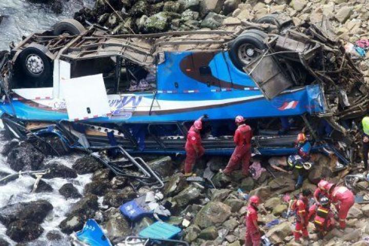 El accidente se ha producido en la carretera Panamericana Norte, a unos 45 kilómetros de Lima, en una zona conocida como "La curva del diablo", que recorre un acantilado sobre el océano Pacífico. El autobús transportaba a 57 personas en total.
