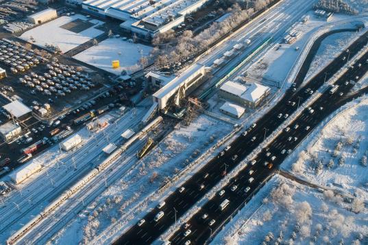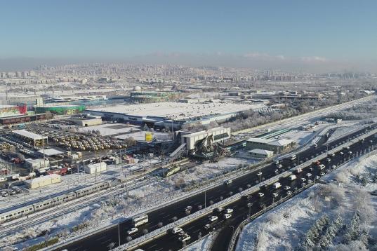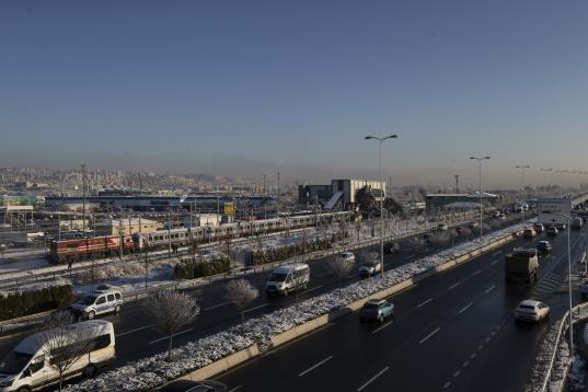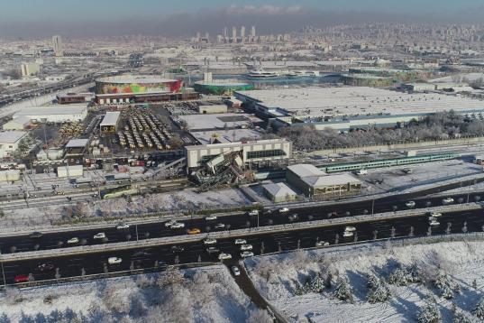 ANKARA, TURKEY - DECEMBER 13 : A drone photo shows aerial view of the crash site where a high-speed train crashed into a pilot engine traveling along the same rails in Turkish capital Ankara on December 13, 2018. After the crash an overpass also...